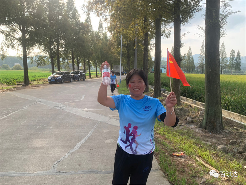 國慶暢跑,為祖國慶生。本次跑團活動全程來回5公里,活動的起點和終點設在風景秀麗的公司創(chuàng)始地曲池-袁岙。隨著總經理的開跑,參賽人員紛紛起跑,興致勃勃,精神煥發(fā)。大家統(tǒng)一著裝,輕裝上陣,舉著橫幅,揮舞著小國旗,臉貼著國旗貼紙,或奔跑、或健走,有的拍照留下快樂瞬間,沿途灑下一片片歡聲笑語,整個活動在輕松歡快的氣氛中圓滿結束。