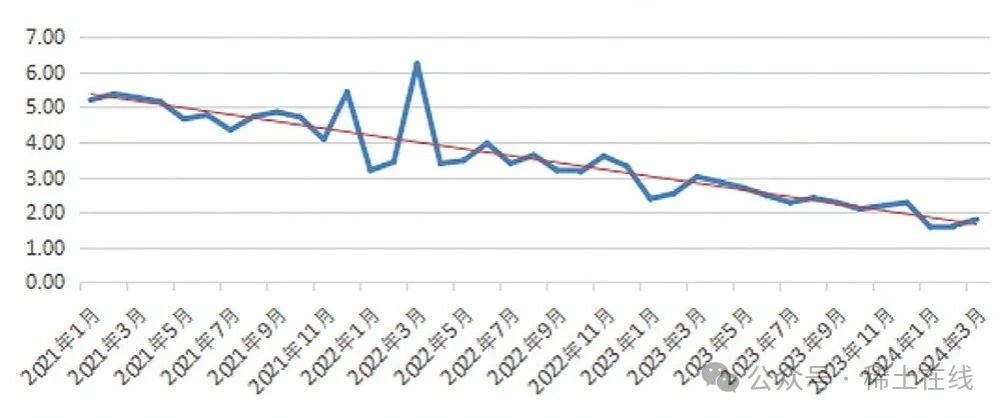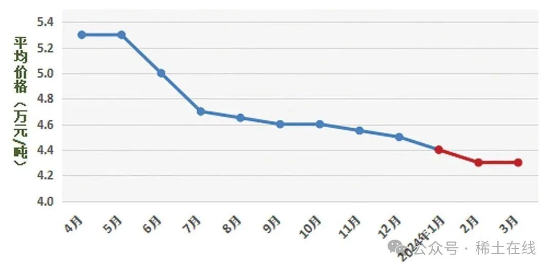 圖 4 2023 ~ 2024 年氧化鐠釹價(jià)格走勢