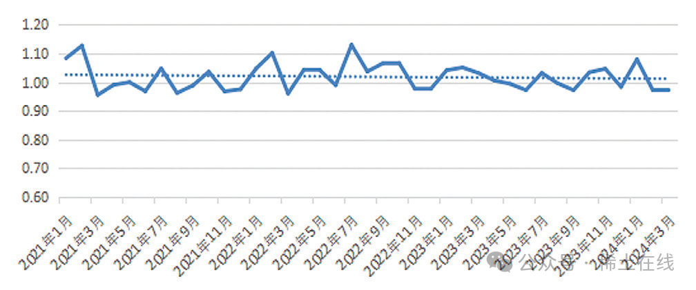2024 年 1 季度稀土市場延續(xù)了下行態(tài)勢,上中下游均承受了較大的壓力,行業(yè)參與者對市場發(fā)展預(yù)期相對保守。從行業(yè)發(fā)展角度看,目前的市場趨勢是行業(yè)產(chǎn)能增長的時(shí)間差、全球宏觀經(jīng)濟(jì)恢復(fù)持續(xù)乏力、國內(nèi)經(jīng)濟(jì)面臨的挑戰(zhàn)依然嚴(yán)峻、國際政治和地緣沖突加劇等多種因素疊加造成的。