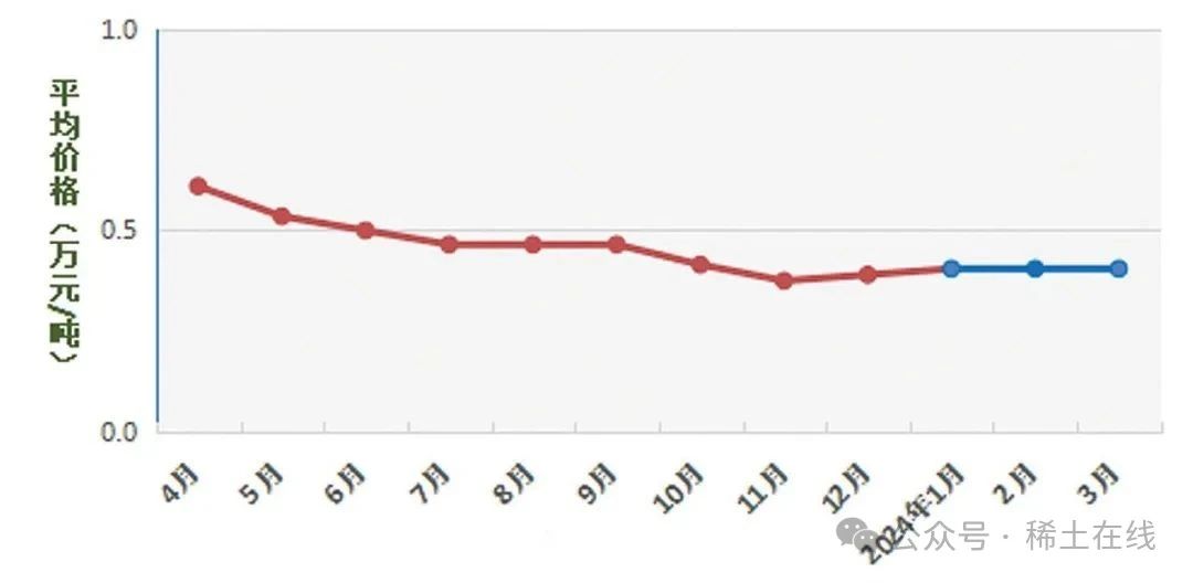 圖 5 2023 ~ 2024 年氧化鑭價(jià)格趨勢