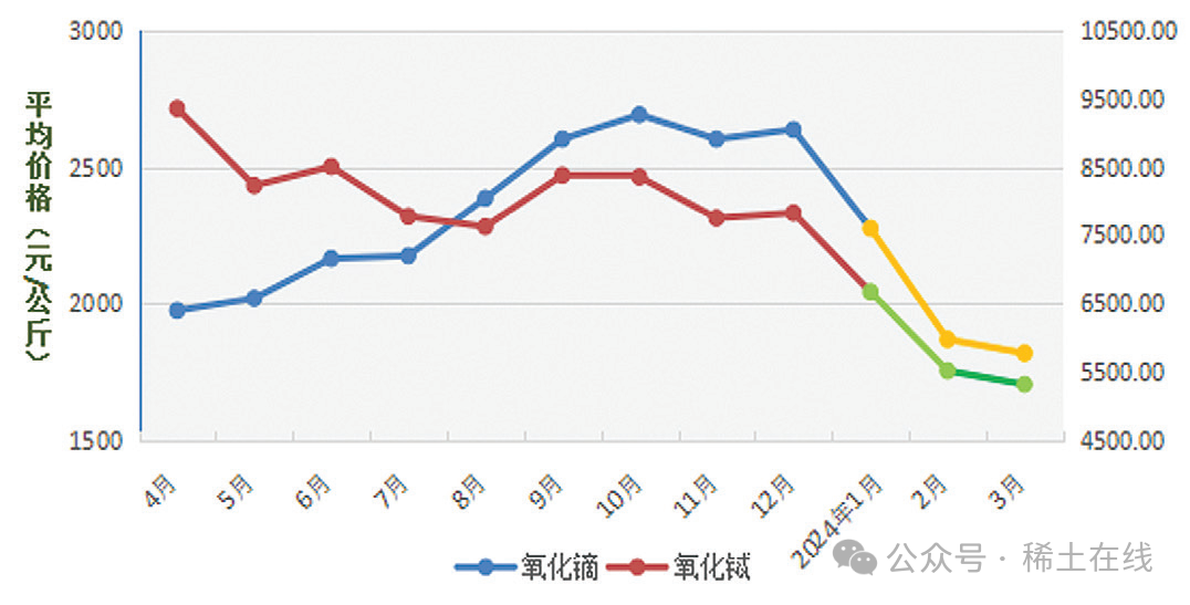圖 6 2023 ~ 2024 年氧化鏑和氧化鋱價(jià)格趨勢