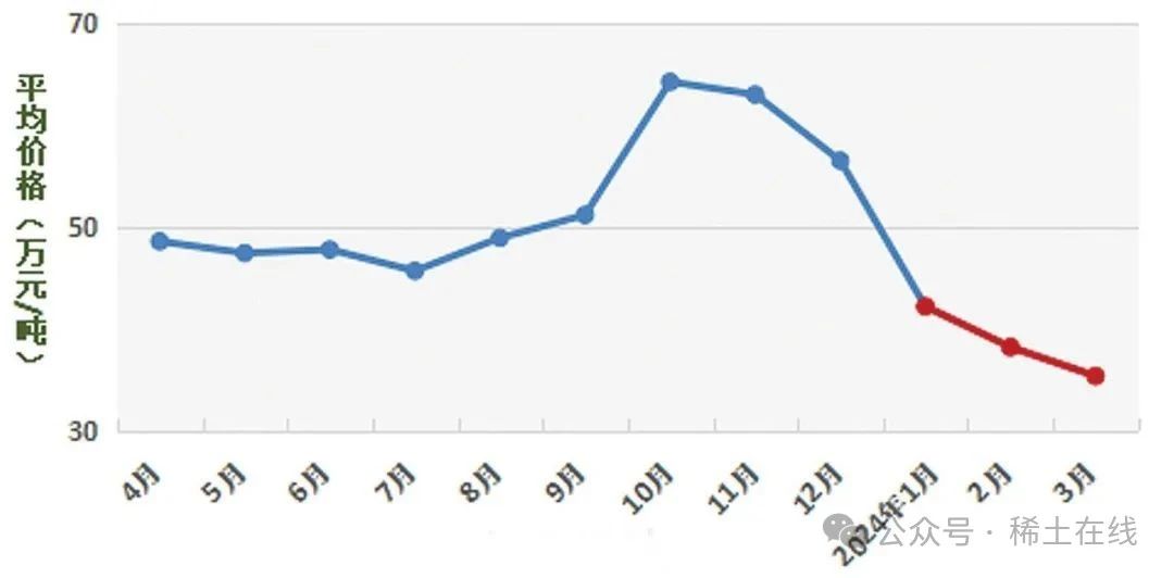 圖 4 2023 ~ 2024 年氧化鐠釹價(jià)格走勢